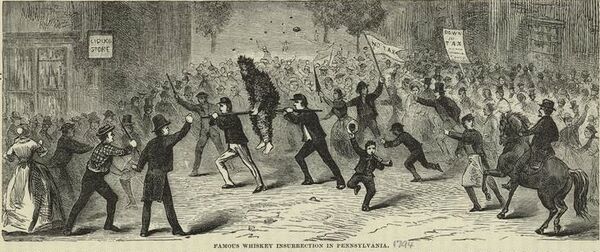 На западном фронтире протестующие прибегали к насилию и угрозам в адрес сборщиков налога. Сопротивление достигло пика в июле 1794 года, когда в Пенсильванию прибыли представители Службы маршалов США для взыскания задолженностей. По сигналу более пятисот человек атаковали укреплённый дом налогового инспектора Джона Невилла, а когда тот застрелил одного из нападавших, здание было сожжено. В ответ Джордж Вашингтон направил в западную Пенсильванию переговорщиков и одновременно начал собирать ополчение против восставших. Узнав о скором прибытии 15 000 вооружённых ополченцев во главе с президентом, восставшие разошлись по домам. Около 20, по другим данным — 170, человек было подвергнуто аресту, однако их позднее оправдали или помиловали.