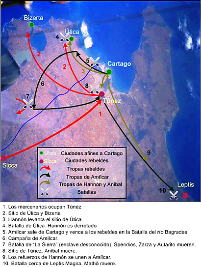 | Причина | спор между Карфагеном и наёмниками о выплатах и борьба ливийцев за освобождение от карфагенской власти | ||