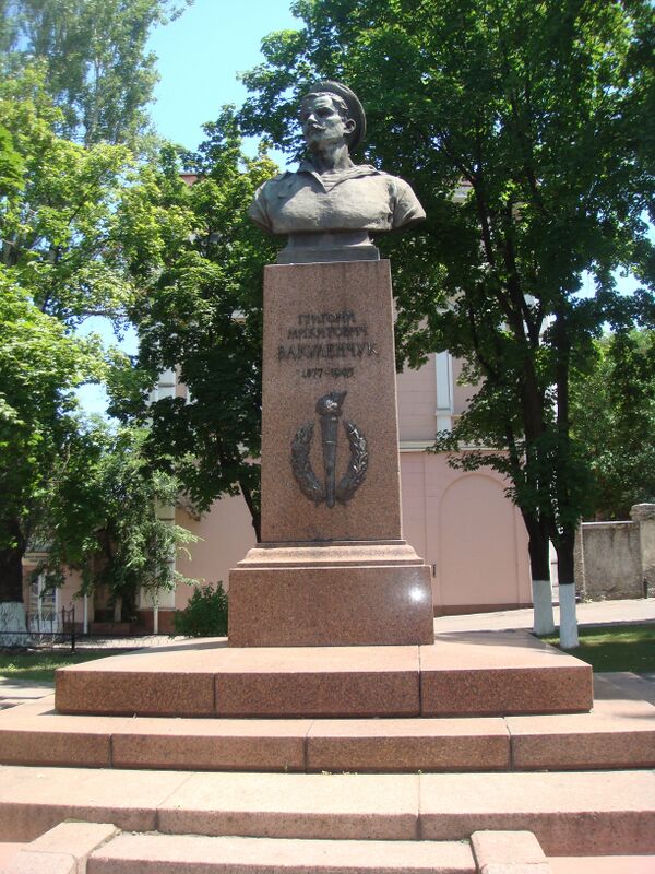 - Памятник зачинщику восстания унтер-офицеру Г. Н. Вакуленчуку, расположенный на Таможенной площади у главных ворот Одесского порта.