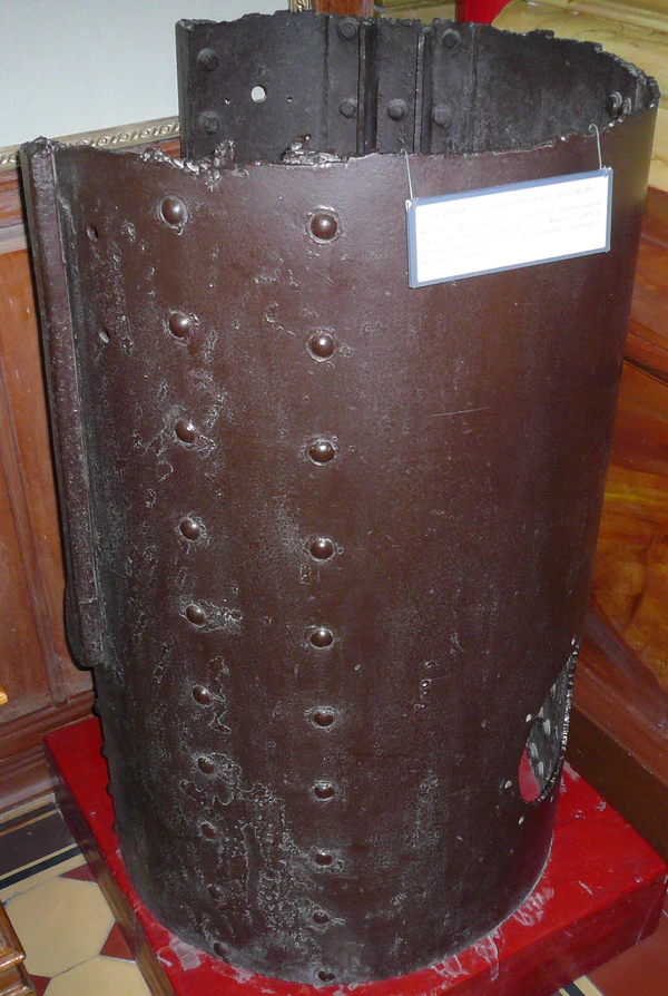 Из-за непогоды на море стрéльбы были перенесены на следующий день. В 11 часов на броненосце был дан сигнал на обед, на палубу была выставлена ендова с водкой для команды, пить которую могли матросы, заранее внёсшие себя в списки «пьющих». Мерной кружкой баталёр наливал всем таким матросам, выстроившимся в очередь, положенную обеденную чарку. Пили водку тут же на палубе[17].