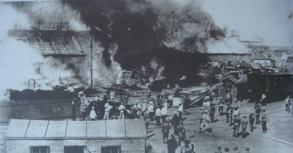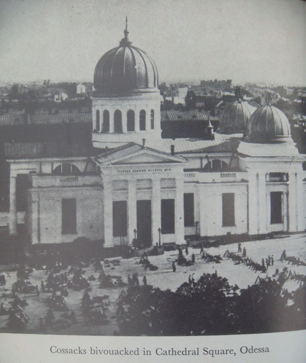 15 сего июня бесчинствующая толпа в Порту в 11 часов вечера подожгла эстакаду, а затем последовательно в 11 часов 30 минут сожгла рампы, 16 сего же июня в 1 час 15 минут ночи станцию Одесса-порт и все склады в районе упомянутой станции. Пожаром уничтожены все здания, эстакада. Остались целыми конюшенное здание новое и пост № 2. Сгорело около 100 вагонов. Войска с 2 часов ночи действовали оружием. Количество жертв пока не представляется возможным установить. Посторонняя толпа не позволяла тушить огонь только при содействии войск в 2 часа ночи приступили к тушению. Пожар продолжается.
