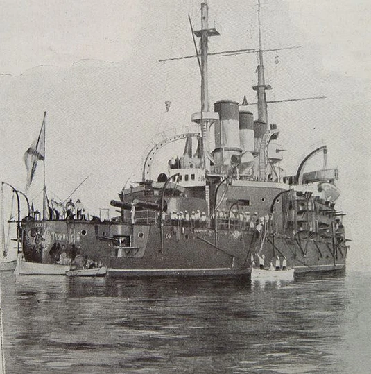 Из-за продолжительных контактов с рабочими судоремонтных заводов экипаж корабля был разложен революционной агитацией. Командир броненосца получал анонимные письма с предупреждениями о готовящемся восстании. За день до выхода в море на учебные стрельбы с корабля было списано 50 матросов, которые сами подали прошение о списании, так как знали о готовящемся восстании и не желали в нём участвовать[9]. В тот же день командир корабля списал ещё около 40 матросов, которых считал неблагонадёжными[10][9].