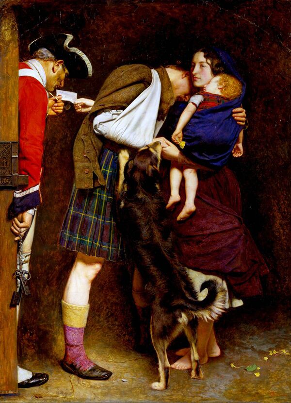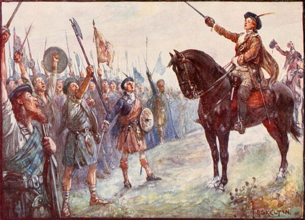 Восстание и его последствия были популярной темой для многих писателей; наиболее значительным из них был сэр Вальтер Скотт, который в начале XIX в. представил восстание как часть общей истории юнионистов. Герой его романа Уэверли — англичанин, который сражается на стороне Стюартов, спасает правительственного полковника и, в конце концов, отказывается от романтической красавицы из Хайленда ради дочери аристократа из долины.[134] Примирение Скоттом юнионизма и 45-го года позволило менее чем 70 лет спустя изобразить племянника Камберленда Георга IV в хайлендском платье и тартане, которые ранее были символами восстания якобитов.[135]