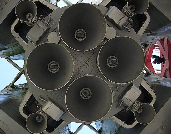 ЖРД каждого бокового блока имеет тягу в пустоте 1 MH и состоит из одного четырёхкамерного основного ракетного двигателя и 2 рулевых камер, питающихся от общего ТНА.