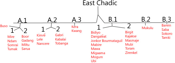 Является одним из трёх основных языковых объединений чадской семьи наряду с западночадской и центральночадской ветвями. Некоторые лингвисты выделяют в чадской семье также четвёртую ветвь — маса[1][4].