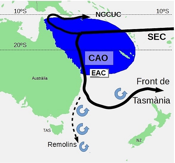 Восточно-Австралийское течение делает климат Новой Зеландии и восточного побережья Австралии более тёплым и влажным, тропическим вместо субтропического; способствует распространению тропической морской фауны в субтропические области вдоль юго-восточного побережья Австралии.