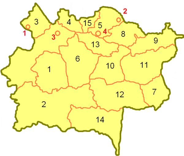 - 15 районов: