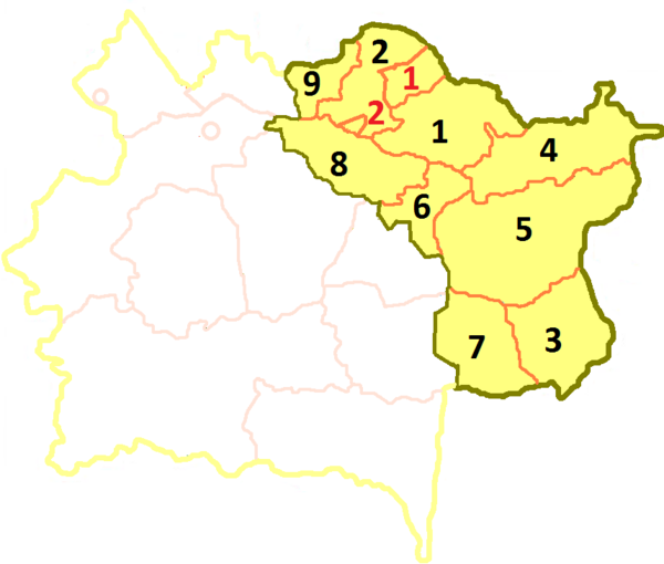 | Включает | 2 города областного подчинения и 9 районов | ||