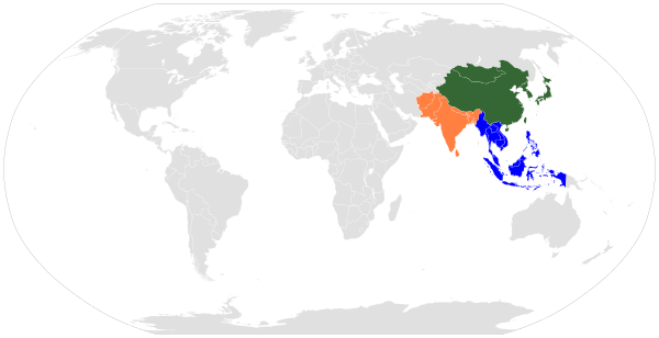 Эта концепция часто является еще одним термином для Дальнего Востока - региона, который несет значительную культурную и религиозную общность. Восточная философия, искусство, литература и другие традиции часто встречаются во всем регионе в таких важных места, как популярная культура, архитектура и традиционная литература. Часто отвечает за Распространение буддизма и индуистской йоги.[10][11]