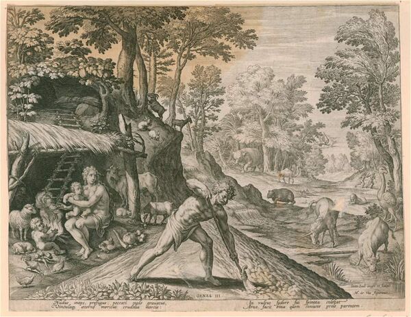 - Адам и Ева после изгнания из земного рая, гравюра по рисунку, (1583)