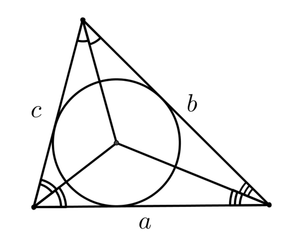 - Расстояние от вершины C до центра вписанной окружности равно , где — радиус вписанной окружности, а γ — угол вершины C.