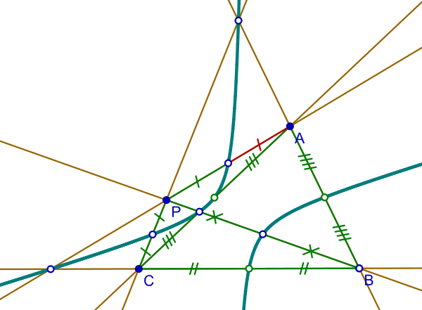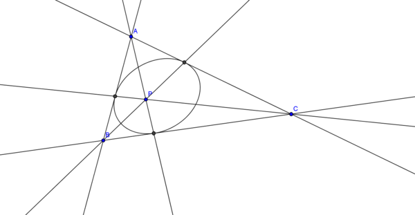 - Пусть задан треугольник ABC и точка P на плоскости. Коническое сечение можно провести через следующие девять точек:
