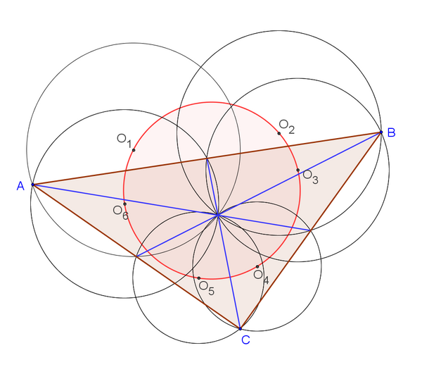 - Во всякий треугольник ABC можно вписать 2 треугольника, 3 стороны которых параллельны 3 биссектрисам треугольника ABC. Эти треугольники имеют общую окружность типа окружности Эйлера, то есть 6 их вершин лежат на 1 окружности.[26]