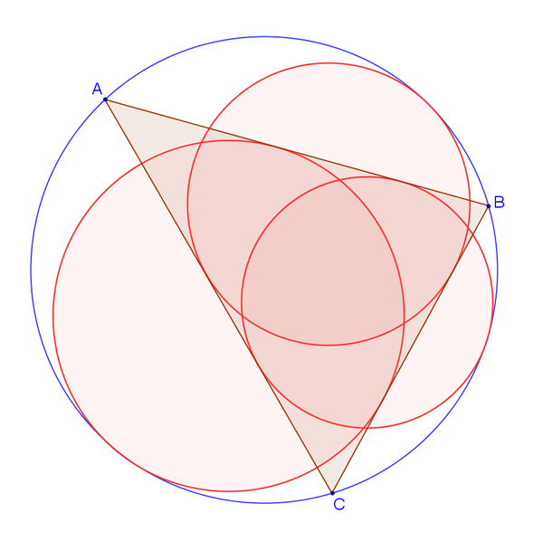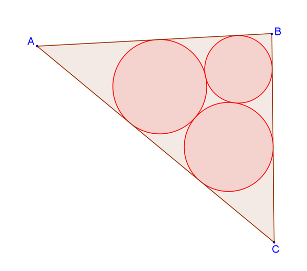 - Три окружности Мальфатти попарно касаются друг друга внутри треугольника. (см. выше)