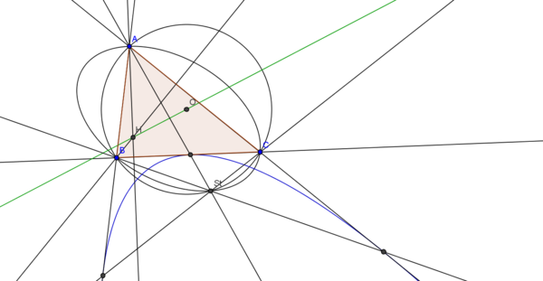- Кубика Мак-Кэя получится, если в качестве фиксированной точки взять центр описанной окружности. Она также проходит через ортоцентр и центр описанной окружности.