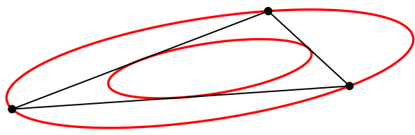 - Oколо треугольника можно описать единственный эллипс, который касается прямых, проходящих через вершины и параллельных сторонам. Такой эллипс называется описанным эллипсом Штейнера.