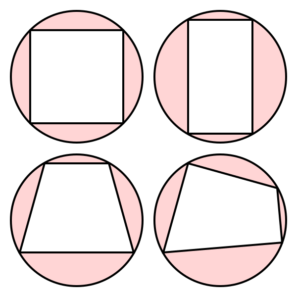 Вписанный четырёхугольник имеет максимальную площадь среди всех четырёхугольников, имеющих ту же последовательность длин сторон. Это другое следствие соотношения Бретшнайдера. Утверждение можно доказать с помощью математического анализа[15].