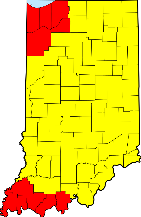 - следует вдоль озера Мичиган небольшая часть северо-западной части Индианы, недалеко от Чикаго, отделённая от остальной части штата