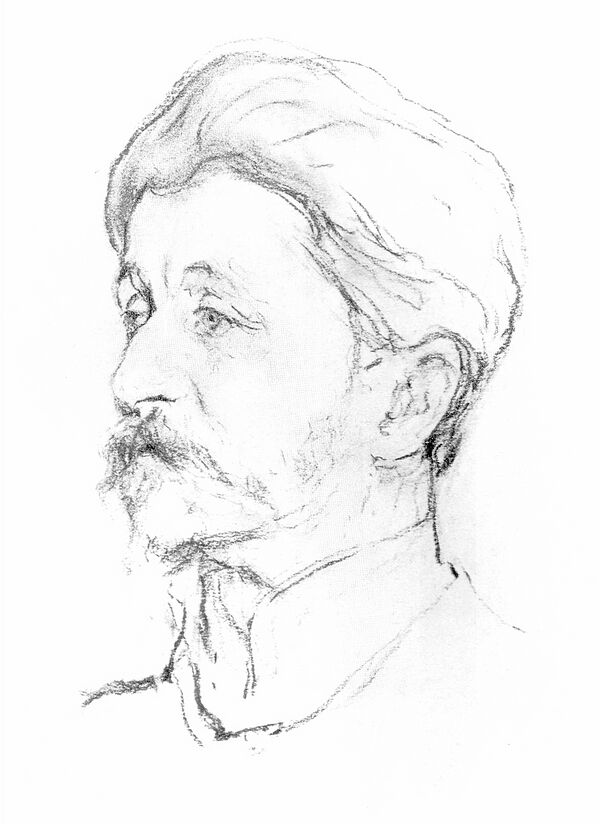 В течение первого сеанса начальный набросок был закончен. Я очень жалею, что никто не догадался тогда же снять фотографию с этого чёрного рисунка. Он был едва ли не замечательнее по силе исполнения, по экспрессии лица, по сходству, чем позднейший портрет, раскрашенный цветными карандашами[153].