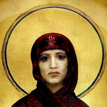 По воспоминаниям, Врубель киевской весной 1884 года переживал бурную влюблённость в жену покровителя — Э. Л. Прахову. Её лицо изображено на иконе «Богоматерь с младенцем», сохранились и многочисленные наброски. Романа возникнуть не могло, но 27-летний художник сделал Эмилию Львовну объектом некоего романтического культа, который поначалу забавлял А. В. Прахова. После переезда Врубеля на дачу Праховых, однако, его привязанность стала раздражать обоих. Выходом стала командировка художника в Италию — в Равенну и Венецию, для изучения сохранившихся там памятников позднеримского и византийского искусства. В письмах отцу и сестре Анне Врубель сообщал, что заработал за лето (в том числе в Софийском соборе, где написал трёх ангелов в барабане купола) 650 рублей, в то время как Прахов увеличил гонорар за четыре иконы до 1200 рублей. Художник совершенно оставил идею доучиться в Академии художеств и получить официальное удостоверение своей профессии[40].