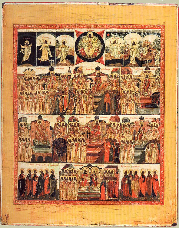 - Седьмой Вселенский собор 787 г. — II Никейский (осуждение иконоборчества). Собор отмечает, что поскольку Христос был человеком, имеют право на существование иконы с его изображением[5].