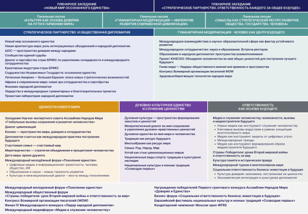 В программе форума — пленарные заседания, семь панельных сессий, свыше 40 тематических площадок по следующим направлениям: