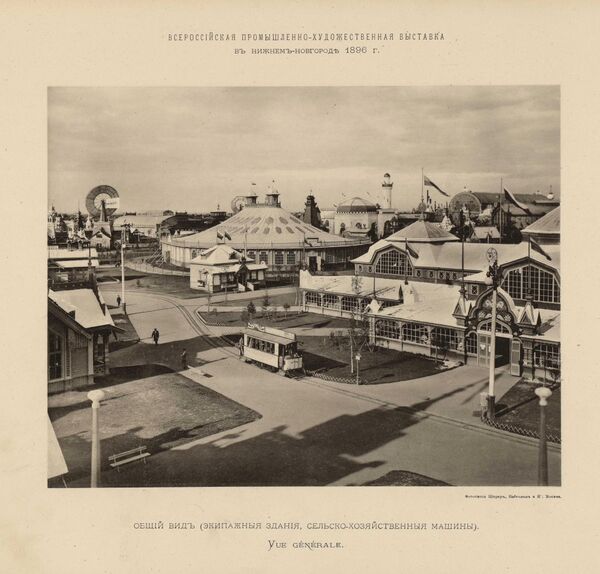 XVI Всероссийская промышленная и художественная выставка была профинансирована императором Николаем II и проходила с 28 мая (9 июня) по 1 (13) октября 1896 года в Нижнем Новгороде, в районе Кунавино, где сейчас расположен «Парк им. 1-го мая»[1]. К открытию выставки в Нижнем Новгороде был пущен первый в России электрический трамвай, устроены фуникулёры — подъёмники, доставлявшие пассажиров с нижней части города в верхнюю (Кремлёвский и Похвалинский), выстроены здания городского драматического театра, окружного суда, биржи Волжско-Камского банка, гостиниц, открыта пароходная скоростная линия, связывающая верхнюю часть города с его заречной частью.