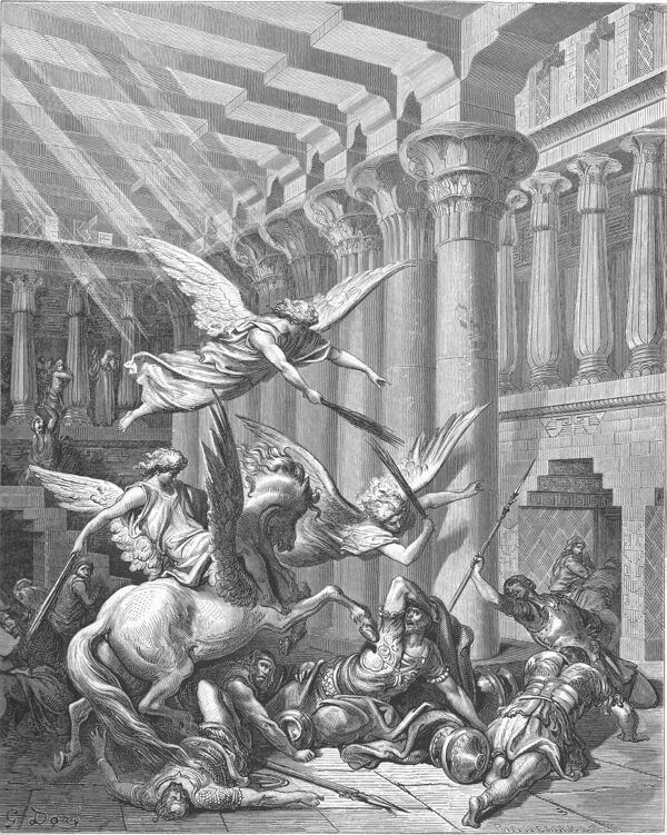 В стране началось жестокое преследование иудеев, соблюдающих Закон Моисеев. Их вместе с детьми сбрасывали со стен, жгли в пещерах, умерщвляли различными другими способами. Однажды нечестивцы надумали надругаться над старцем Елиазаром, заставляя того есть свиное мясо, однако тот выплюнул недопустимую для еврея пишу. Тогда его преследователи, зная о высоком авторитете старца, предложили ему притвориться, как будто он совершает языческие обычаи, однако тот с гневом отверг этот план, говоря, что во многом является примером для окружающих, поэтому до конца жизни будет соблюдать Закон. Тогда его умертвили.
