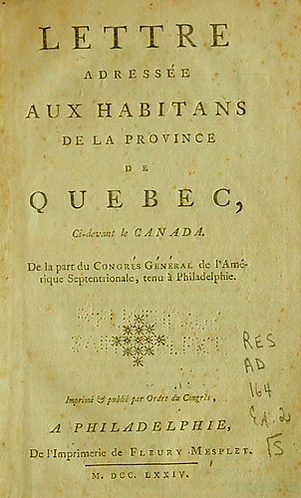 Собравшийся в 1774 году первый континентальный конгресс в письме от 26 октября предложил франкоканадцам участвовать во втором своём заседании в мае 1775 года. Во время заседания второго континентального конгресса было отправлено второе письмо, но оба документа остались без ответа[8].