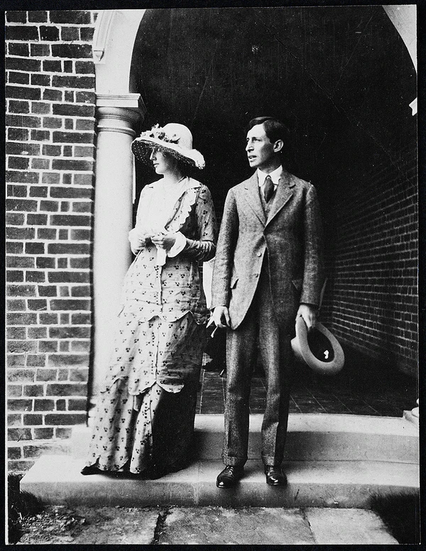 Формально Вулф познакомился с Вирджинией только 17 ноября 1904 года, когда он обедал у Стивенов на Гордон-Сквер, чтобы попрощаться перед отъездом на государственную службу в Цейлон, хотя она знала о нём из рассказов Тоби. Во время этого визита он заметил, что она была совершенно молчалива во время еды и выглядела больной[107]. В 1909 году Литтон Стрейчи предложил Вулфу сделать ей предложение руки и сердца. Он так и сделал, но ответа не получил. В июне 1911 года он вернулся в Лондон с годичным отпуском, но обратно на Цейлон не поехал[108]. В Англии Леонард снова возобновил свои контакты с семьёй и друзьями. Через три недели после прибытия он обедал с Ванессой и Клайвом Беллом на Гордон-Сквер 3 июля, где к ним позже присоединились Вирджиния и другие члены общества, которое позже будет называться группой Блумсбери. Леонард датирует формирование группы той ночью[109]. В сентябре Вирджиния попросила Леонарда приехать к ней в Литтл-Талланд-Хаус в Фирле, Суссекс, на выходные. После того уик-энда они стали видеться чаще[110].