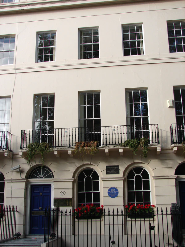 Вирджиния Вулф родилась 25 января 1882 года в доме 22 на улице Гайд-Парк Гейт и жила там до смерти своего отца в 1904 году. Их дом располагался в юго-восточной части улицы, в узком тупике к югу от Кенсингтон-Роуд и к западу от Альберт-холл. Рядом были Кенсингтонские сады и Гайд-парк[36], где семья регулярно совершала прогулки. Этот дом был построен в 1846 году Генри Пейном — один из ряда таунхаусов на одну семью из верхней прослойки среднего класса. Вскоре он стал слишком мал для растущего семейства. На момент свадьбы родителей он состоял из подвала, двух этажей и чердака. В июле 1886 года Лесли Стивен поручил архитектору Джону Пенфолду расширить жилое пространство с помощью пристройки и надстройки. После капитального ремонта в доме чердак стал жилым, появился ещё один этаж с тремя спальнями и кабинетом, а также ванная. Это был высокий, но узкий дом, в котором в то время не было водопровода. Вирджиния позже признавалась, что опасалась, будто эта башня может перевернуться от порыва ветра.