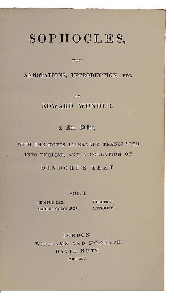 - Sophocles Oedipus Coloneus, ad optimorum liborum fidem recensuit. Leipzig 1825