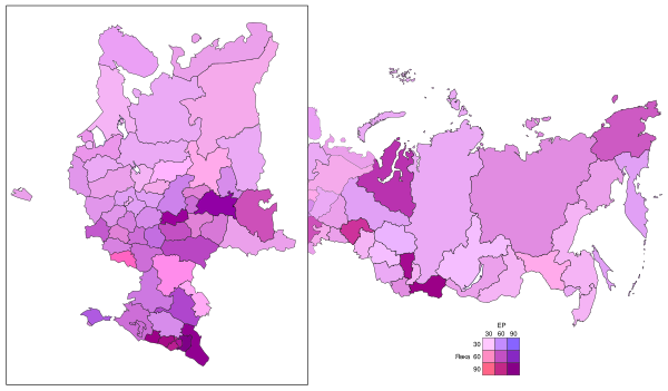| Тюменская область | 81,14 % | 58,35 % | 12,27 % | 14,12 % | 11,45 % | 0,50 % | 0,39 % | 0,53 % | 0,35 % | 0,25 % | 0,23 % | 0,20 % | 0,24 % | 0,14 % | 0,11 % | 0,67 % |