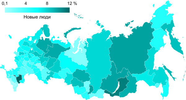 | Москва | (весь регион) | 50,3 | 37 | 22,7 | 7,1 | 7,3 | 7,1 | 2,9 | 4,9 | 1,1 | 2,4 | 1,2 | 2 | 1,8 | 1,1 | 0,3 | 1,3 |