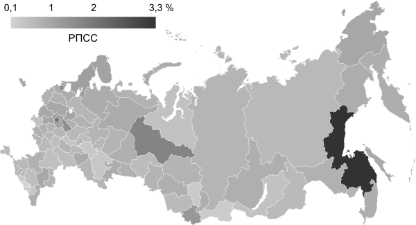 | Сахалинская о. | (весь регион) | 39,9 | 35,7 | 28,6 | 8,9 | 5,2 | 9,1 | 2,7 | 1 | 1,9 | 1 | 0,9 | 0,9 | 0,8 | 0,3 | 0,2 | 2,8 |