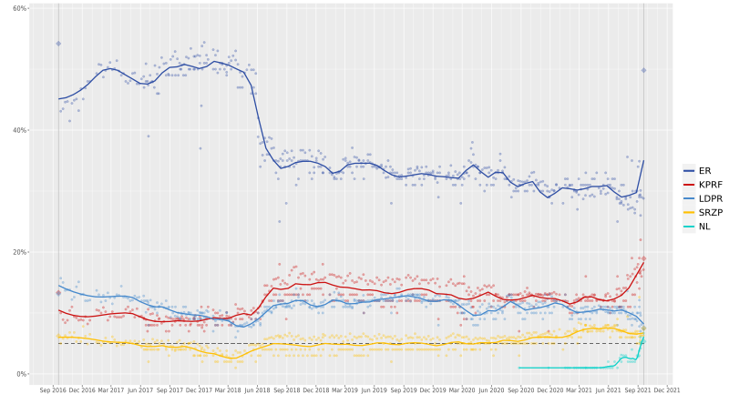 С 2016 по 2021 годы в региональных парламентах России, помимо партий Госдумы, были представлены 10 партий. Две непарламентские партии, «За правду» и «Патриоты России», объединились со «Справедливой Россией» в январе 2021 года[15][16]. Объединённая партия получила название «Справедливая Россия — Патриоты — За правду»[17] и предложила нескольким другим партиям, в том числе КПРФ, сформировать коалицию. Новый сопредседатель «справороссов» Захар Прилепин пытался выступить с предложением об объединении на съезде КПРФ[18] и обращался с письмом к председателю КПРФ Геннадию Зюганову[19]. Как Зюганов, так и председатель «Справедливой России — За правду» Сергей Миронов сообщали, что их партии вернутся к вопросу слияния после выборов в Госдуму[19].