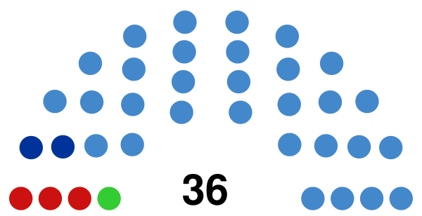| Прошлые выборы | 3 / 36 (13,34 %) |