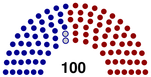 Результатом выборов стало большинство у республиканцев с 54 местами и меньшинства у демократов с 46 места, включая 2 независимых (Берни Сандерс и Агнус Кинг) в коалиции.[4]