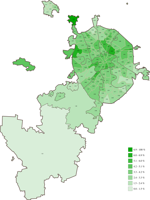 На 1 июля 2013 года в Москве (включая территории, присоединённые к городу с 1 июля 2012 года) было зарегистрировано 7 176 568 избирателей[10].