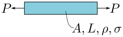 В первой ситуации на стержень воздействует собственный вес и растягивающая сила . Переменными материала являются плотность и напряжения Предположим, что длина и растягивающая сила определены в техническом задании, в таком случае они являются фиксированными переменными. Наконец, площадь сечения - свободная переменная. В данной постановке целью является минимизация массы путем выбора материала с оптимальным сочетанием переменных материала — . Рисунок 1 иллюстрирует данную задачу.