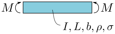 Во второй ситуации материал подвергается воздействию изгибающих моментов. Уравнение максимальных напряжений при изгибе имеет вид , где — изгибающий момент, — расстояние от нейтральной оси, — момент инерции сечения. Схема приложения нагрузки изображена на рисунке 2. Используя приведенное выше соотношение для массы и решив его для свободных переменных, получится соотношение , где — длина, а — высота балки. Если , , и — фиксированные переменные, то индекс эффективности при изгибе имеет вид .