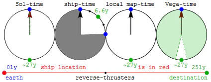 Таким образом, интервал времени любого процесса, происходящего в системе отсчёта , измеренный часами в движущейся системе отсчета , больше, чем интервал времени , измеренный такими же часами в собственной системе отсчёта . Коэффициент увеличения интервала постоянен при постоянной скорости.