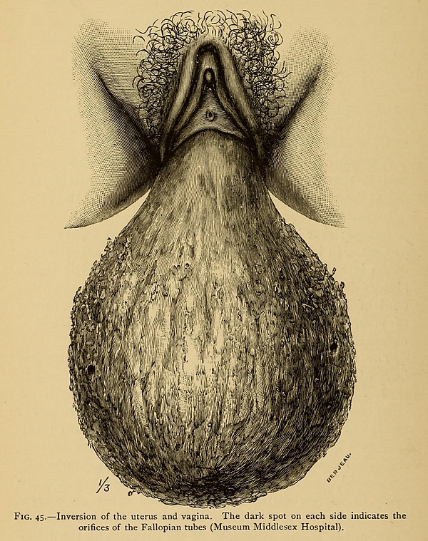 Полный выворот матки, при котором вывернутая матка находится во влагалище или выходит из половой щели, распознать несложно. При частичном вывороте с помощью двуручного исследования в области тела матки можно обнаружить воронкообразное углубление, а во влагалище — опухолевидное образование.