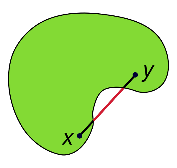 - В терминах связности, выпуклое множество можно определить так: множество выпукло, если его пересечение с любой (вещественной) прямой связно.