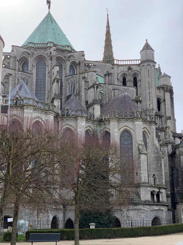 Внешние аркбутаны, поддерживающие своды главного нефа, впервые применены для апсиды церкви аббатства Сен-Жермен-де-Пре, завершённой в 1063 году[17], затем — в соборе Парижской Богоматери. Более смело аркбутаны использованы в Шартре при перестройке более ранней церкви. Первый ярус аркбутанов в Шартре содержит двойные арки, между которыми вставлены небольшие монолитные колонки с капителями. По мере роста стен сверху к ним были добавлены аркбутаны второго яруса[18].