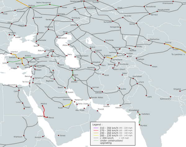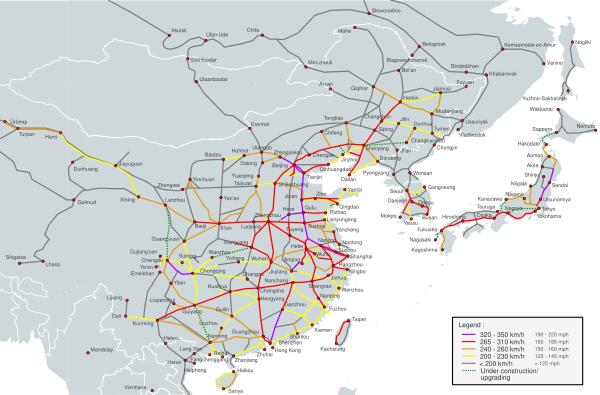 Впервые регулярное движение высокоскоростных поездов началось в 1964 году в Японии по проекту «Синкансэн». В 1981 году поезда ВСНТ стали курсировать и во Франции, а вскоре бо́льшая часть западной Европы, включая даже островную Великобританию, стала связана единой высокоскоростной железнодорожной сетью. В начале XXI века мировым лидером по развитию сети высокоскоростных линий, а также эксплуатантом первого регулярного высокоскоростного маглева стал Китай.