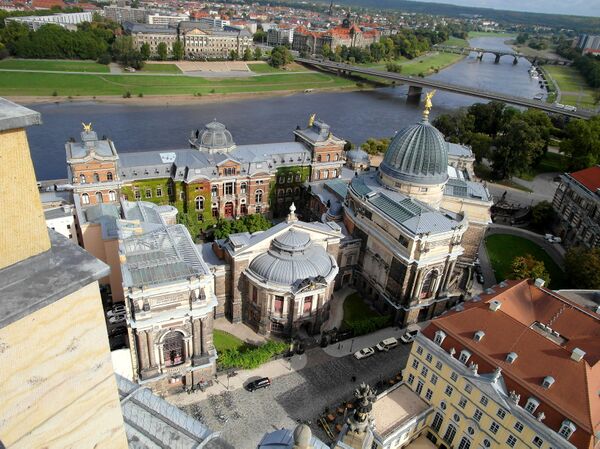 Главное из них находится на террасе Брюля. В 1884 году было решено возвести новое большое здание для академии, в котором помимо учебных аудиторий и мастерских сможет разместиться и выставочный зал. Строительство было поручено одному из профессоров академии, архитектору Константину Липсиусу. В 1894 году строительные работы были полностью закончены. В феврале 1945 года здание академии на террасе Брюля в ходе бомбардировки было частично разрушено. Восстановительные работы были закончены в 1952 году. С 1991 по 2002 здесь проводилась капитальная реставрация. Сейчас здание академии является одной из главных архитектурных достопримечательностей Дрездена. В здании расположены мастерские живописи факультета I и выставочный зал «Октогон».