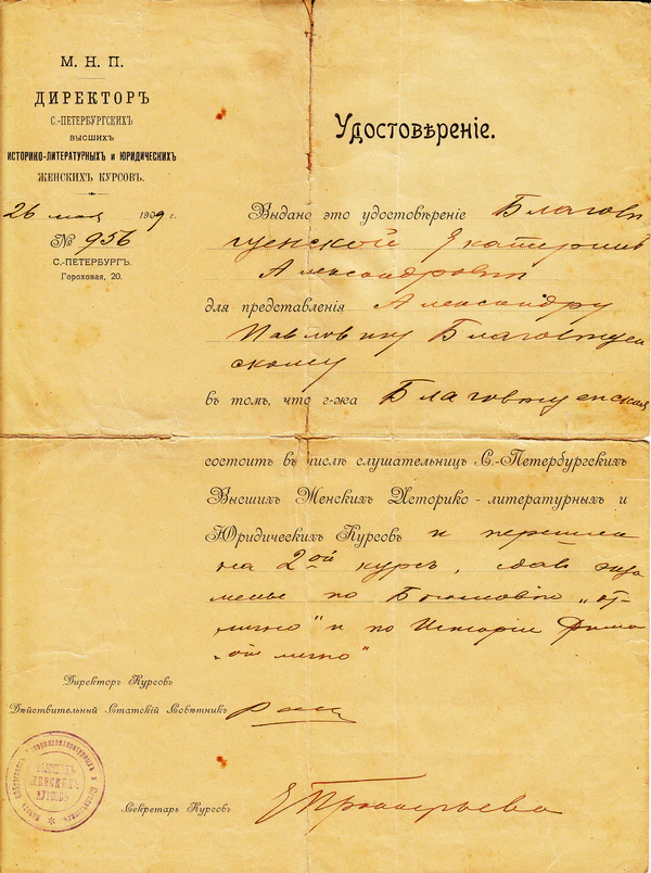 - Обозрение преподавания наук на Историко-литературных Высших женских курсах в С.-Петербурге. 1913—1914 годы. — СПб., тип. Ю. А. Мансфельда (находится в Фонде 733 (Департамент народного просвещения). Оп. 155. Ед. хр. 655. Л. 7—11 об)