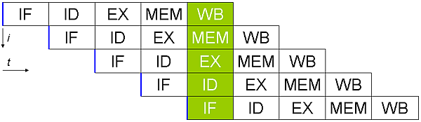 На иллюстрации показан простой пятиуровневый конвейер в RISC-процессорах. Здесь: