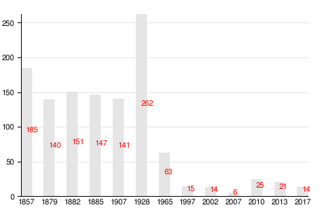 Число жителей по семейным спискам 1879 г.: 68 м. п., 72 ж. п.; по приходским сведениям 1879 г.: 64 м. п., 69 ж. п.[7]